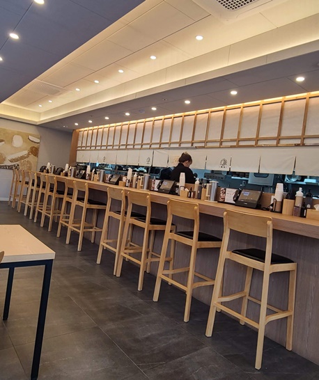 내부는 오픈 주방을 중심으로 바 테이블과 일반 테이블이 배치되어 혼밥이나 가족 식사 모두 부담 없이 즐길 수 있는 분위기입니다. 특히, 각 테이블마다 비치된 태블릿으로 주문과 결제를 한 번에 할 수 있어, 번거로움 없이 편하게 식사 에 집중할 수 있습니다.